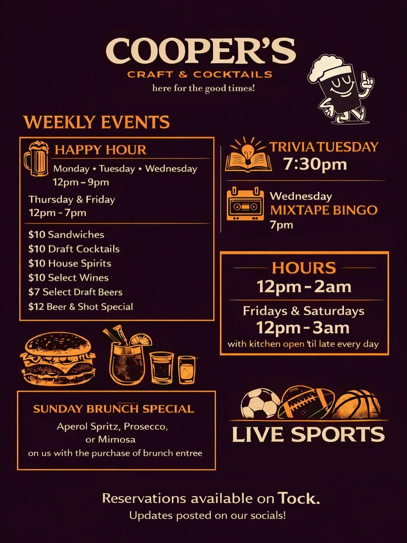 Cooper's authentic hospitality makes it unique every time and ideal for any special occasion - whether it’s an intimate first date, a drink after work, a blowout birthday bash, or something in between.